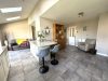 Being fitted with a range of wall and base mounted units with Granite work surfaces over, incorporating inset sink with mixer tap and drainer. Built in double oven, gas hob with extractor over, integrated dishwasher, space with plumbing for washing machine and microwave. Breakfast bar provides seating with over head lighting. Ceiling lights, radiator, tiled flooring, larder storage cupboard, Velux roof lights provide extra natural light and bi fold doors opening to the enclosed rear garden.