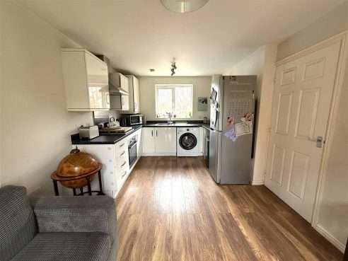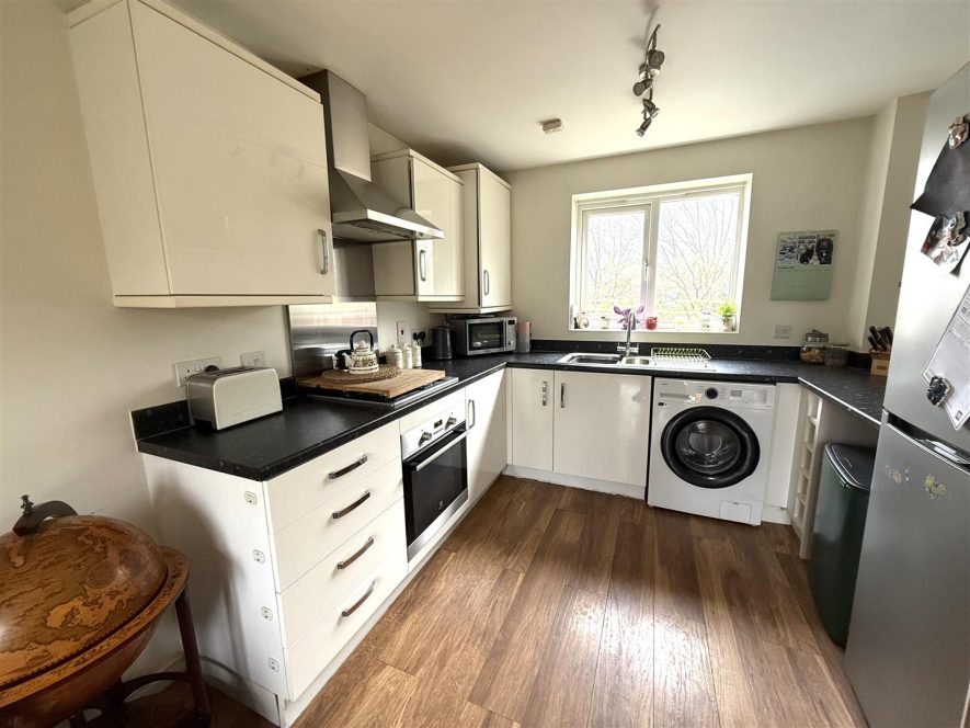 Being fitted with a range of wall and base mounted units with work surfaces over, incorporating inset stainless steel sink with mixer tap and drainer. Built in electric oven, gas hob with extractor over, space with plumbing for washing machine and further appliance space. Wall mounted boiler, two ceiling light points, radiator, laminate flooring and upvc double glazed window to front aspect. French upvc doors to Rear Garden.
