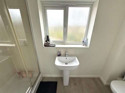 Comprising double walk in shower cubicle, w.c and pedestal hand wash basin. Ceiling light point, extractor fan, radiator and upvc double glazed window to front aspect.