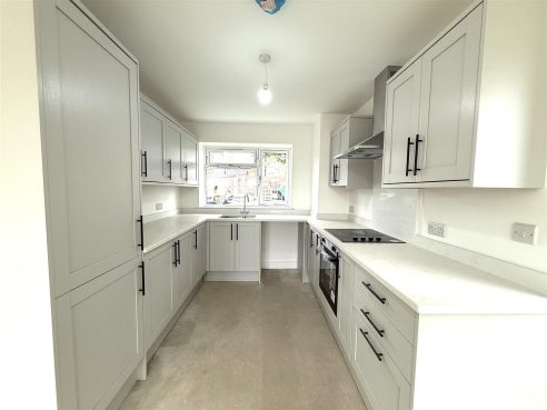 Being fitted with a range of wall and base mounted units with work surface over, incorporating inset sink with mixer tap and drainer. Built in electric oven, hob with extractor hood over, appliance space for washing machine and integrated fridge/ freezer. Ceiling light point and upvc double glazed window to front aspect.