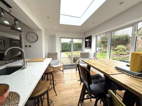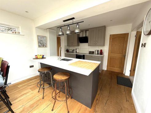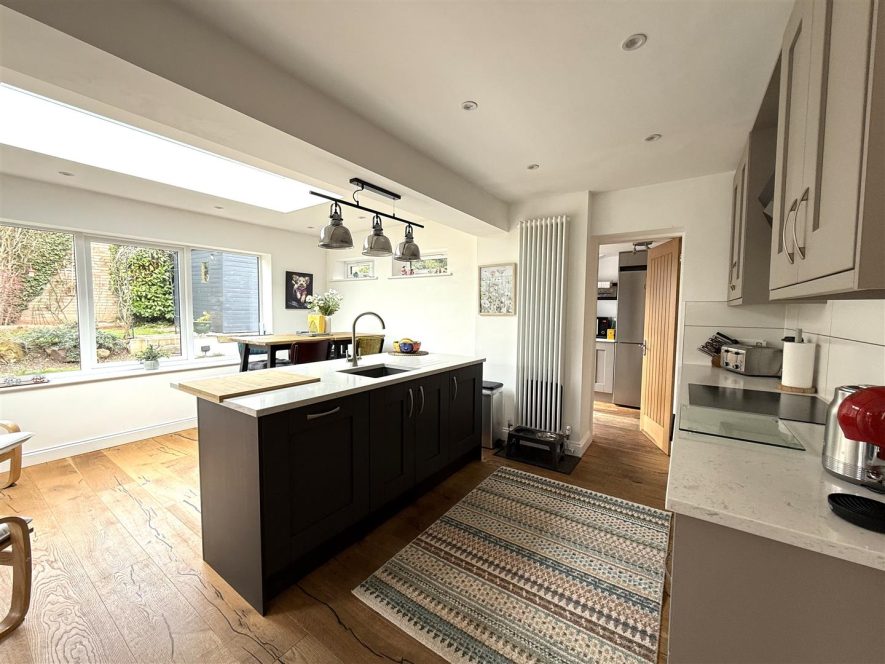 Being fitted with a range of matching wall and base mounted units with granite work surfaces over, incorporating built in electric oven with induction hob and extractor over. Kitchen island having inset sink with mixer tap, integrated dishwasher and over head lighting. Inset ceiling lights, wooden flooring, radiators and upvc double glazed windows to side and rear aspects. Lantern roof for extra natural light and again bi fold doors to Rear Garden.