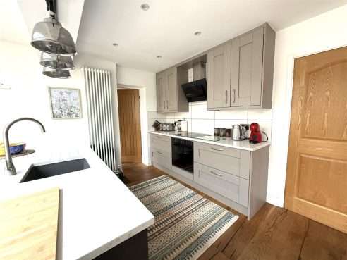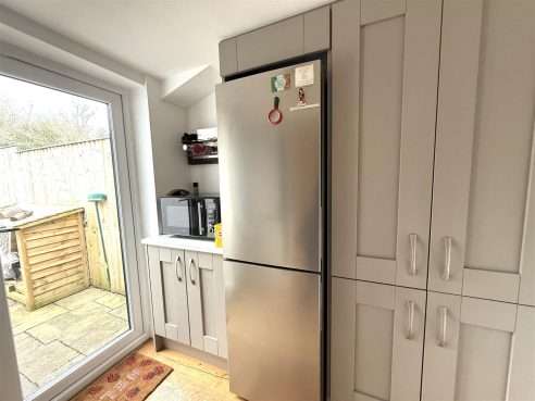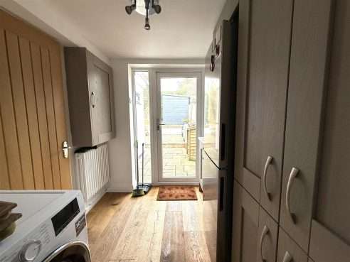 Being fitted with wall and base mounted units with work surface over, allowing space for appliances. Ceiling light pint, radiator, wooden flooring and upvc door to Rear Garden. Access door to Garage.