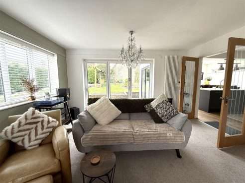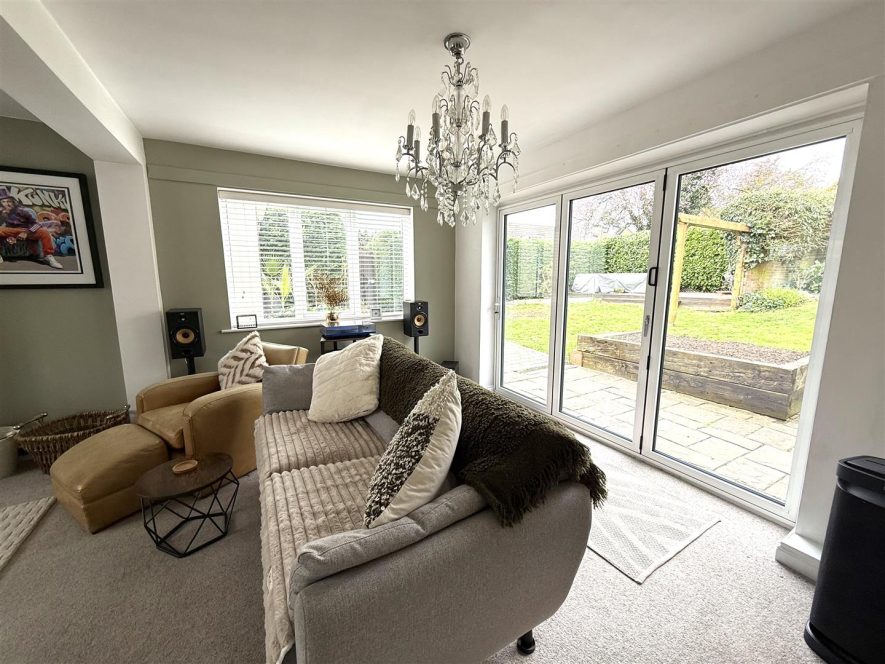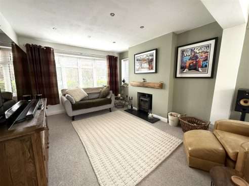 Having decorative oak mantle over log burner on hearth. Ceiling light points, two radiators and upvc double glazed windows to front and side aspects. Bi fold doors leading to Rear Garden and double doors to Breakfast Kitchen.