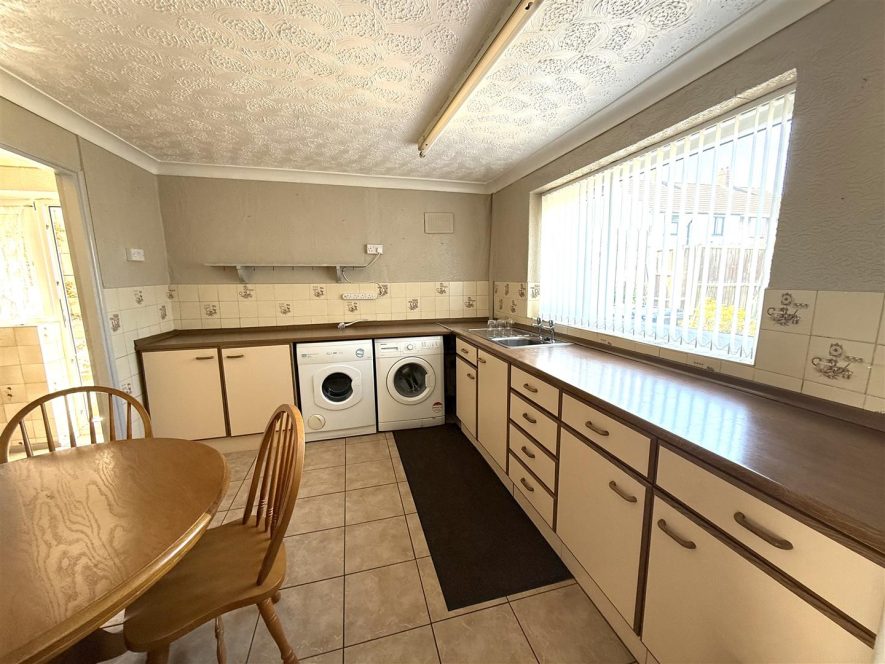 Having ceiling light point, coving, tiled flooring, radiator, and useful storage cupboard. Gas cooker and fridge/freezer. Upvc double glazed window to side aspect and upvc door to Rear Garden.