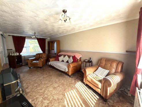 Having brick feature fireplace with gas fire on tiled hearth. Two ceiling light points, coving, radiators and upvc double glazed windows to front and rear aspects. Door to Kitchen.