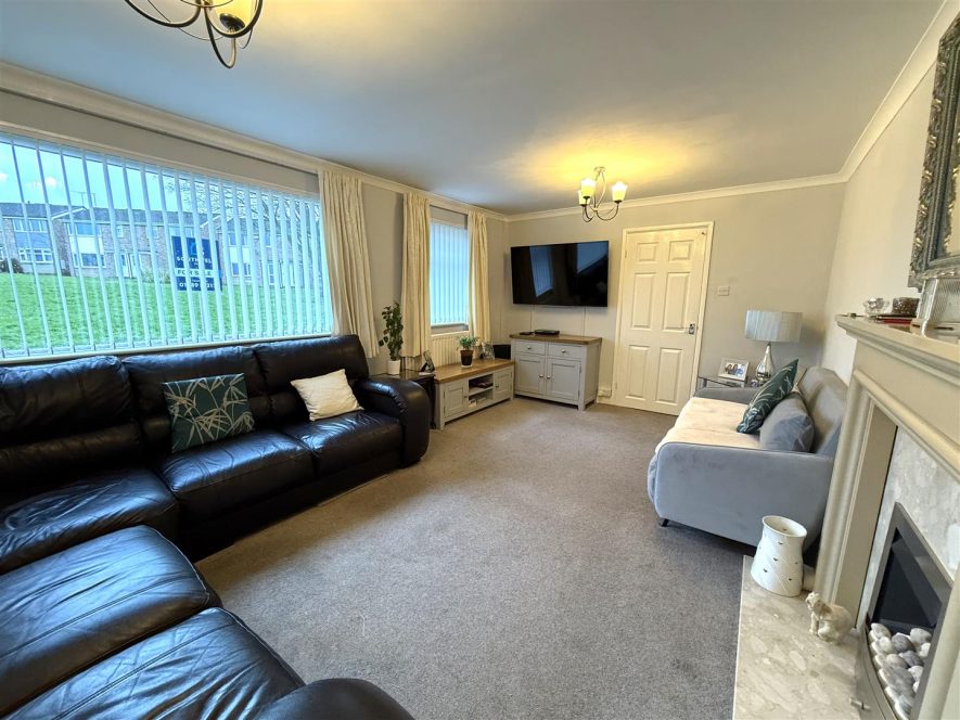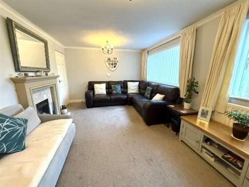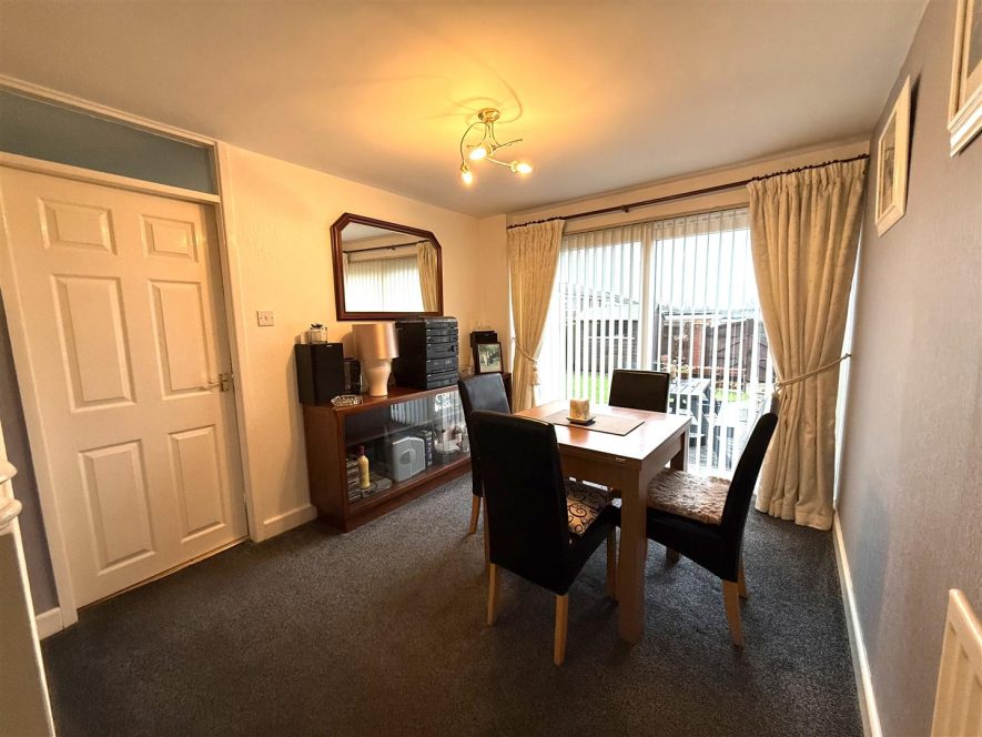 Having feature fire surround with inset pebble effect gas fire on hearth. Two ceiling light points, radiator, coving and two upvc double glazed windows to front aspect. Door to Dining Room.