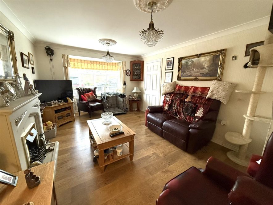 Having feature fire surround with inset fire on hearth. Two ceiling light points, radiators, coving, wooden flooring and walk in double glazed bay window to front aspect. Door to Dining Room.