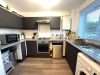 Being fitted with a range of wall and base mounted units with work surfaces over, incorporating inset stainless steel sink with mixer tap, drainer and tiled splash. Built in electric oven with gas hob and extractor over, appliance spaces for dishwasher, washing machine and fridge/freezer. Ceiling light point, laminate flooring, wall mounted boiler and upvc double glazed window to front aspect.