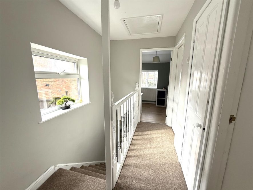 Approached from upvc double glazed front entrance door with side screen. Having ceiling light point, radiator, laminate flooring, panelling to walls and useful under stairs storage. Stairs to First Floor Landing.