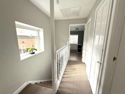 Approached from stairs in Hallway and having ceiling light point, loft access, airing cupboard housing combination boiler and upvc double glazed window to side aspect.