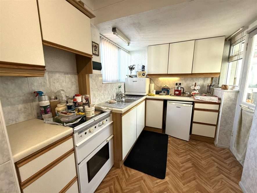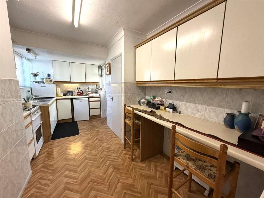 Being fitted with a range of wall and base mounted units with work surfaces over, incorporating inset stainless steel sink with mixer tap, drainer and tiled splash. Electric cooker with extractor over, space for fridge, breakfast seating area and cupboard housing boiler and hot water tank. Two ceiling light points, radiator, larder cupboard and upvc double glazed window to front aspect. Upvc double glazed door to Inner Lobby.