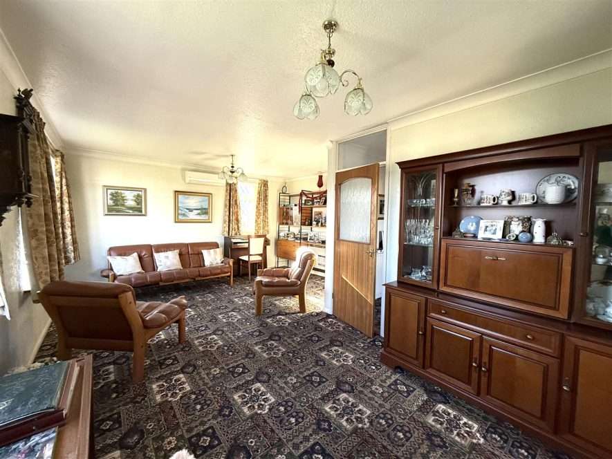 The property having a lawned fore garden with pathway to Lobby and front entrance door. Driveway to Covered Carport which in turn leads to Garage with roller shutter door. The enclosed rear garden being mainly laid to lawn with borders, paved patio, shed and outside tap.