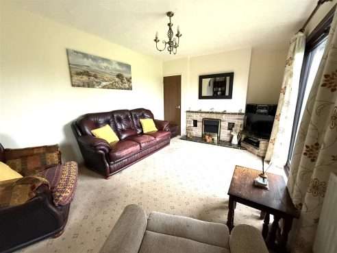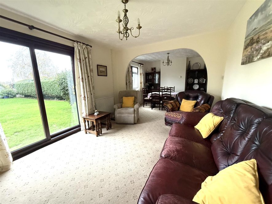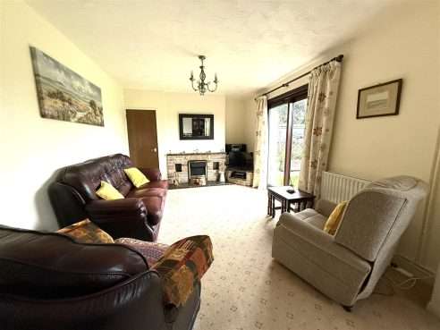 Having brick feature fire place with inset electric fire on tiled hearth. Two ceiling light points, two radiators and upvc double glazed window to rear aspect. Sliding upvc patio doors to Rear Garden.