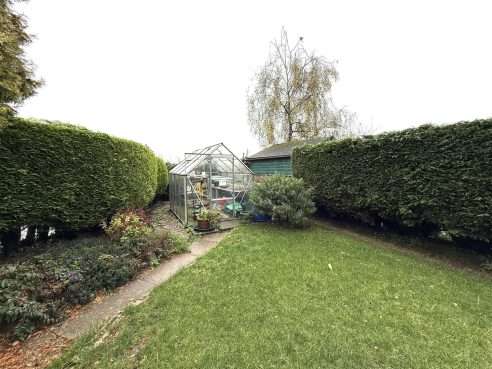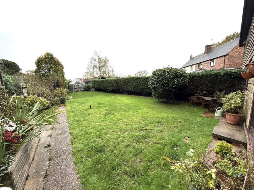 The property having a foregarden with lawn and borders with hedgerow boundary. Driveway provides off road parking. A gate to rear allows access to the good sized rear garden being mainly laid to lawn, with borders, shed, greenhouse and outside tap. Open aspect to rear.