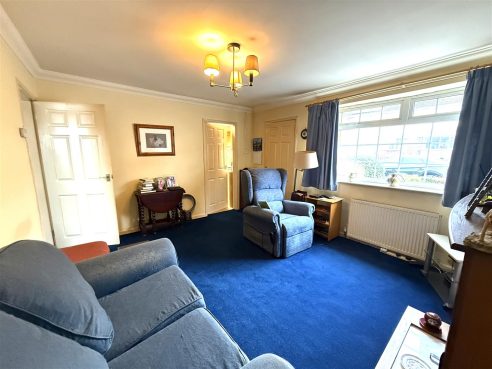 Having wooden feature fireplace with inset gas fire on hearth. Ceiling light point, radiator, coving and upvc double glazed window to front aspect. Door to Kitchen and Hallway.