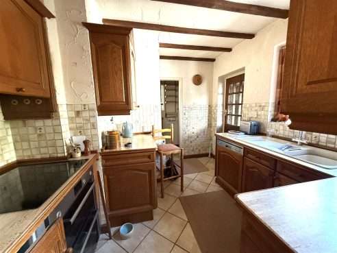 Being fitted with a range of wall and base mounted units with work surfaces over, incorporating inset sink with mixer tap, drainer and tiled splash. Built in double oven with hob and extractor fan, integrated dishwasher and fridge. Ceiling light point, wooden feature beams to ceiling, radiator, tiled flooring, useful walk in pantry and upvc double glazed window to side aspect. Door to Outer Hall.