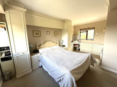 Having fitted wardrobes. Ceiling light point, coving, radiator and double glazed windows to front and rear aspects.