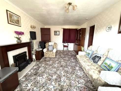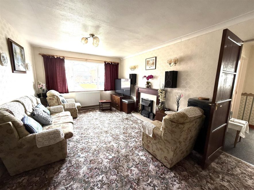 Having wooden feature fire surround with electric fire on hearth. Ceiling light point, coving, two radiators, wall lights and upvc double glazed windows to side aspects. Door to Inner Lobby and Bedrooms.