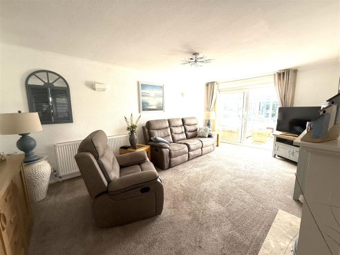 Having a wooden feature fire surround with electric fire on marble hearth. Ceiling light point, wall lights, coving, radiator and sliding upvc double glazed patio door to Conservatory.