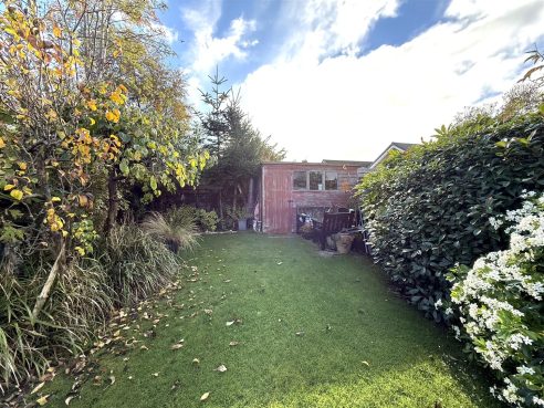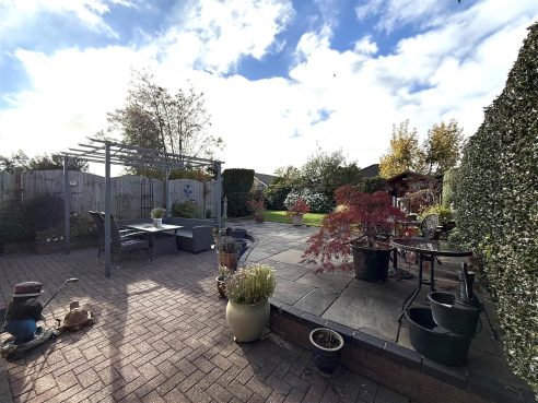 The front of the property having a lawned fore garden and block paved driveway allowing parking for several vehicles which in turn leads to Garage with door and having light and power. A side gate allows access to the SOUTH FACING enclosed rear garden with paved patio, steps to further seating area, lawn with mature flower borders, shed, summer house and outside tap.