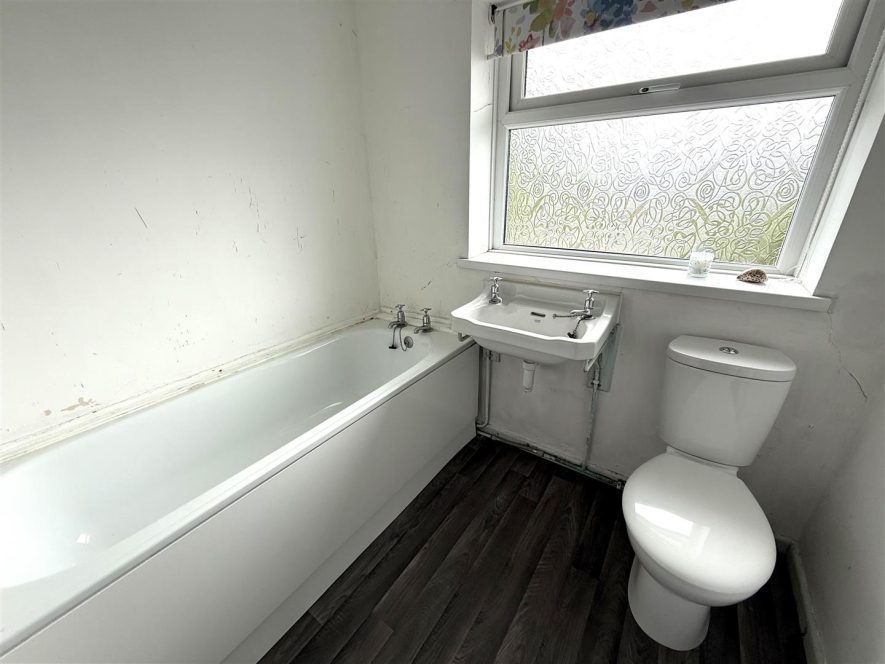 Comprising bath, hand wash basin and w.c. Ceiling light point, radiator and upvc double glazed window to rear aspect.