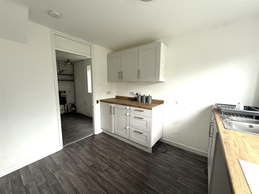 Being fitted with a range of wall and base mounted units with work surfaces over, incorporating inset stainless steel sink with mixer tap and drainer. Ceiling light point and upvc double glazed window to rear aspect. Door to Utility.