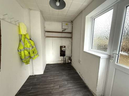Having ceiling light point, under stairs storage cupboard and upvc double glazed window and door to side elevation.